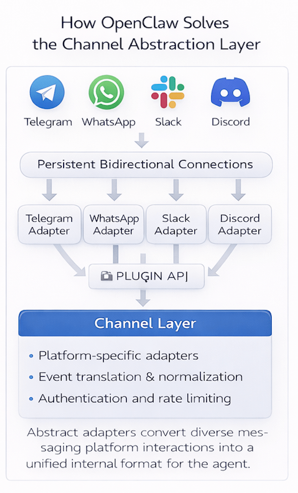 - OpenClaw introduces a Channel Layer.